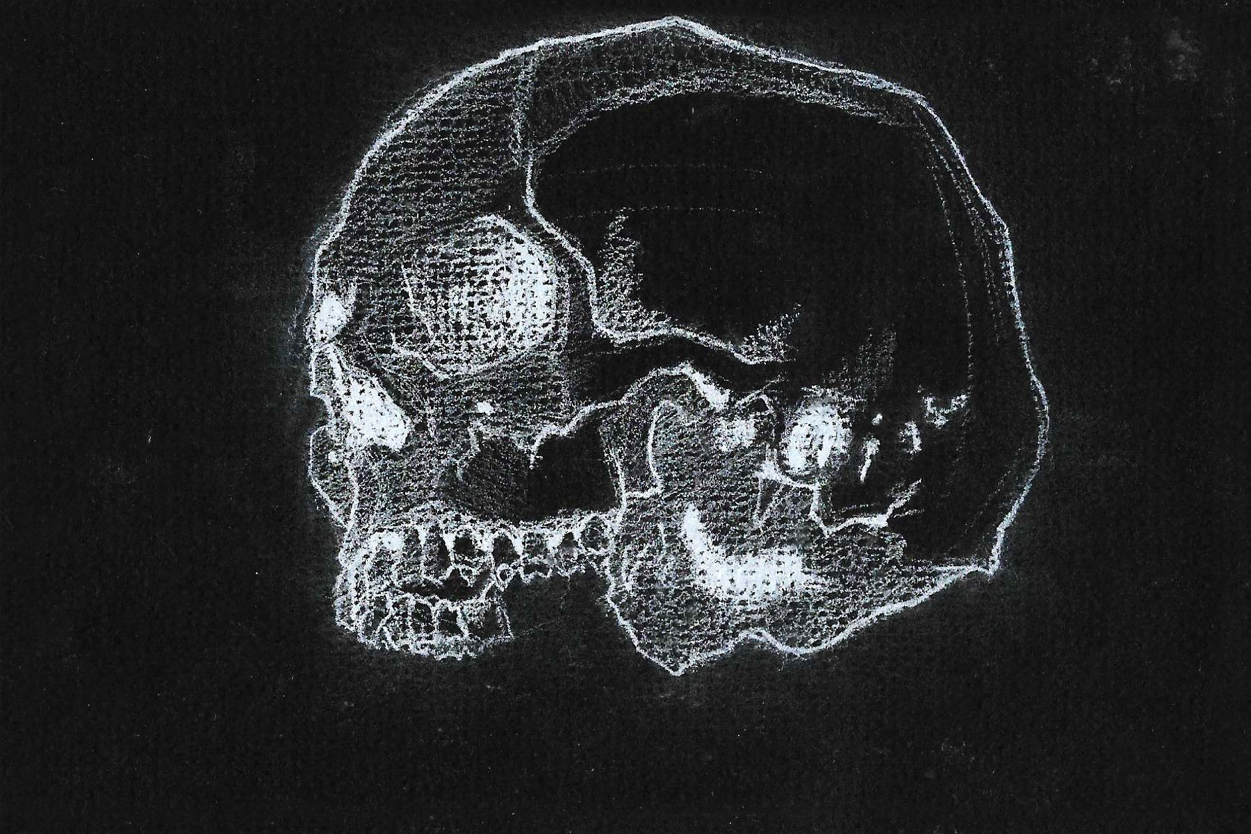 Original Drawing Drawn from life White charcoal on black textured paper 5 3/8 x 3 3/4 in. Recommended to be placed in a 8 x 10 in. frame with a mat border